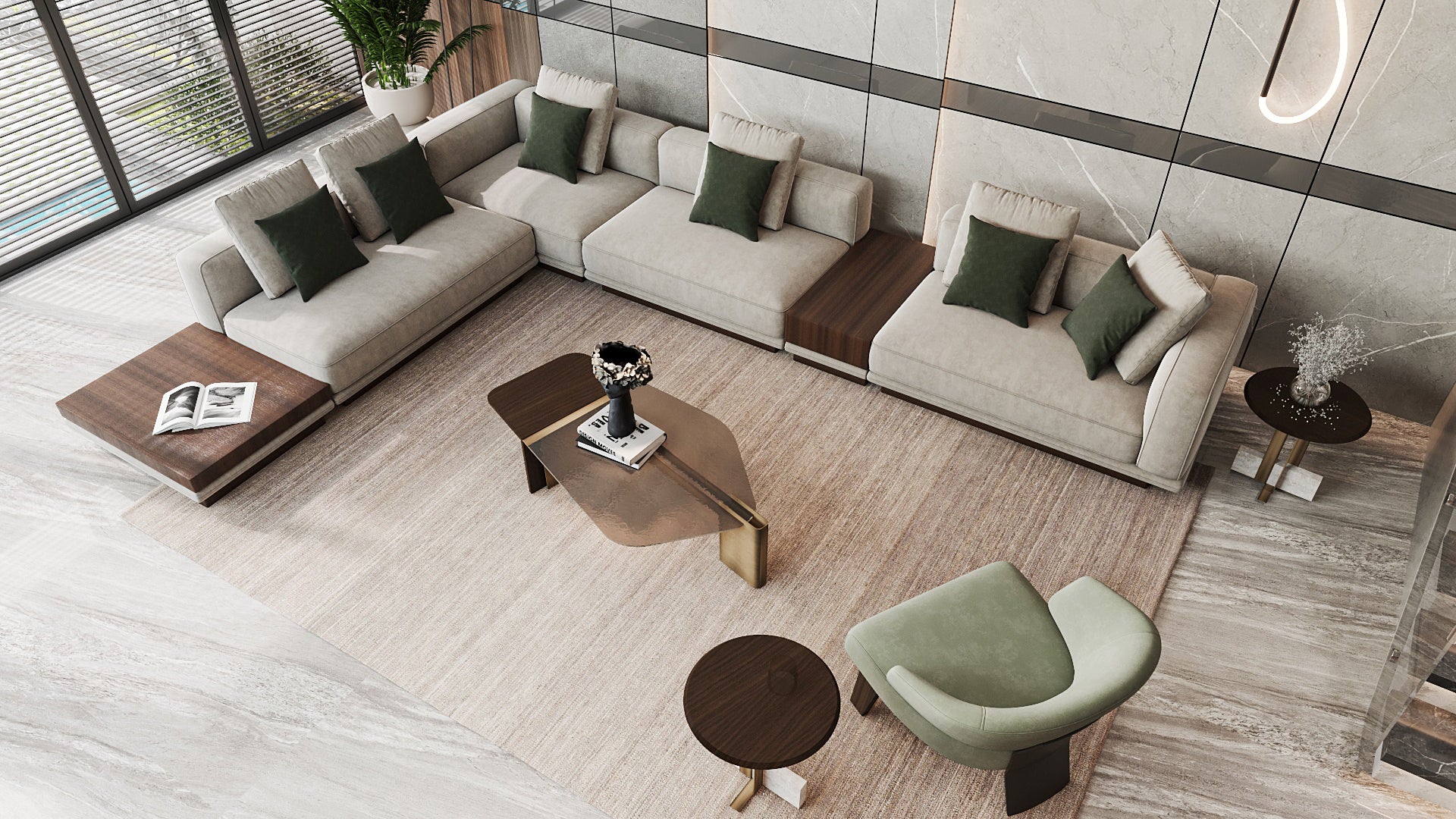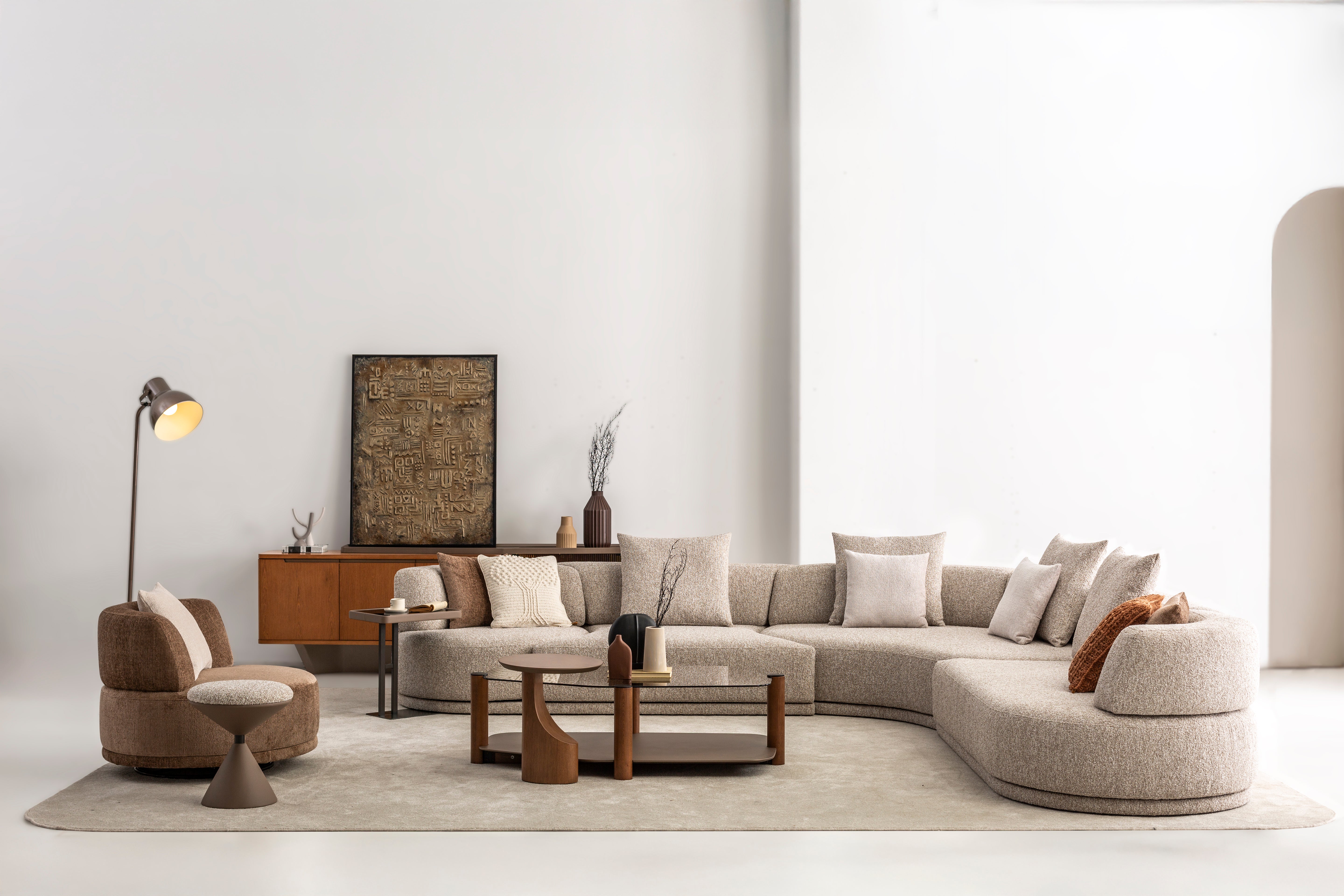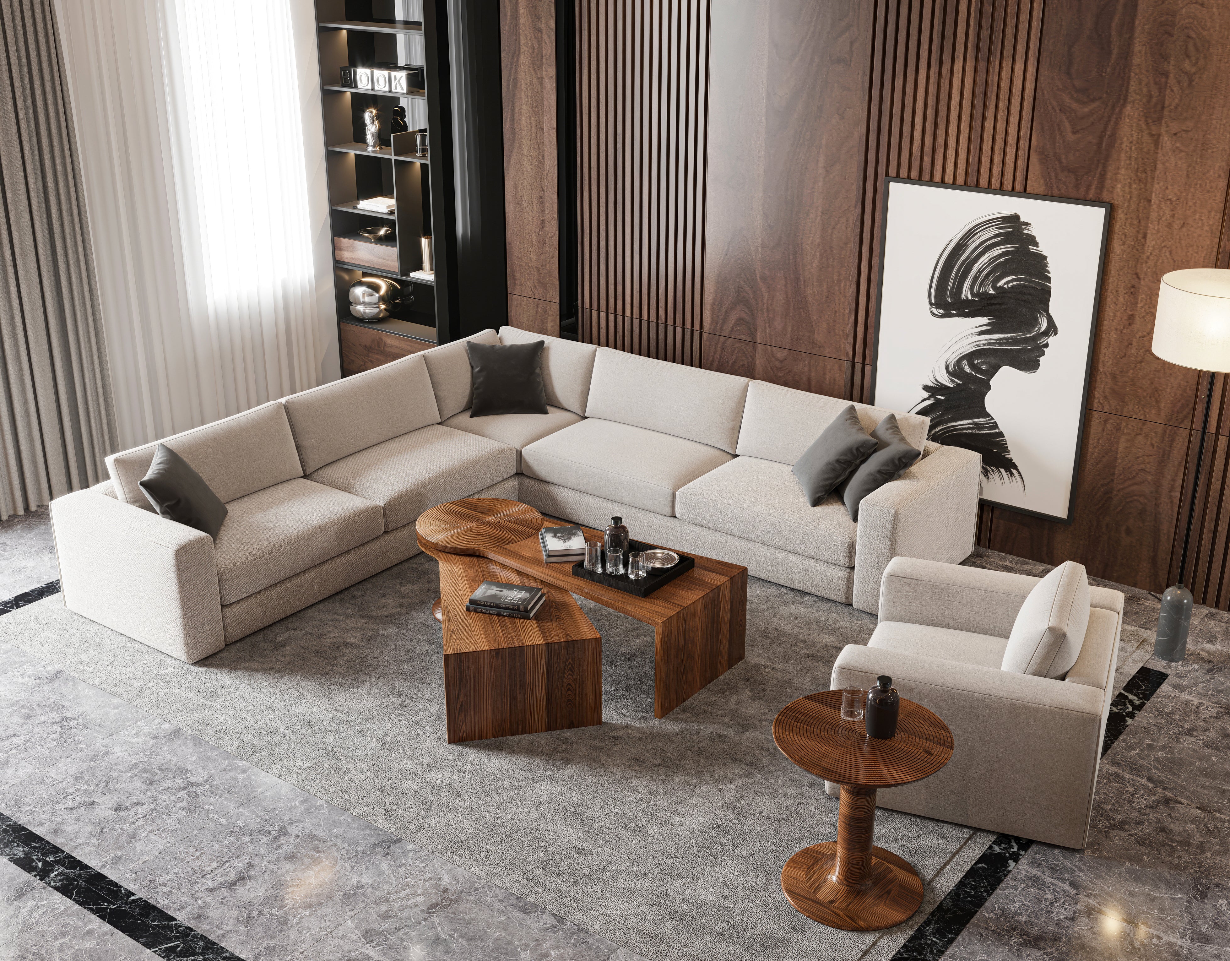 Thoughtful forms and refined materials come together to create a living space that feels balanced, elegant and effortlessly inviting.