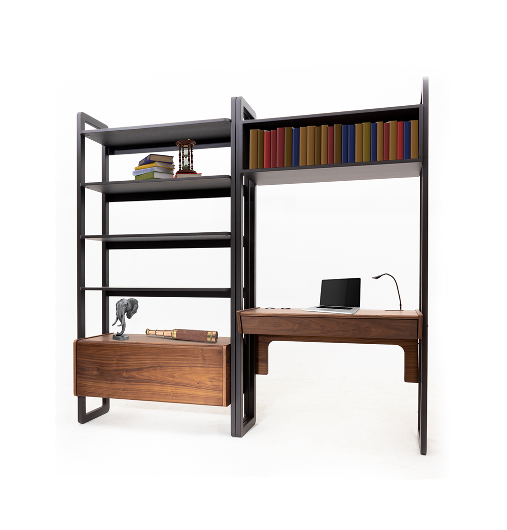 Enhance your career with our Career Bookshelf. Featuring a sleek design with anthracite paint on MDF and American walnut veneer, this bookshelf adds a touch of sophistication to your workspace. Organize your professional library in style and elevate your career to new heights.